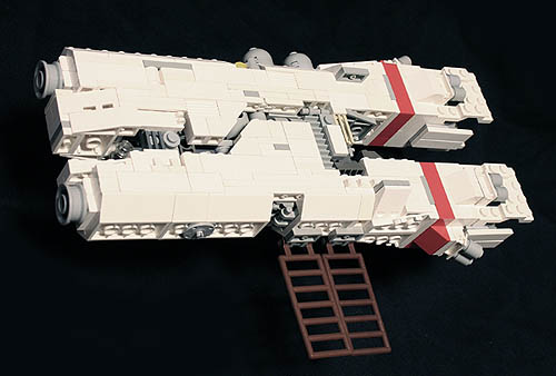 ![]() ![]() 無人防衛艦防人級は、太陽系外から来襲する敵性勢力に対する常備防衛網として考案されたシステムのための艦で、艦と名はつくものの、その実体は航行能力を持った人工衛星である。それは、保有艦艇数を水増ししてその規模を誇示したい宇宙軍の見栄のためでもある。数千の規模で量産されるため、構造も簡素で、当然ながら人間の居住区画もない。 初期哨戒及び迎撃のために太陽系の全天球方向・一定距離ごとにこの防人級が配備されており、有事の際は宇宙群本部に通報がなされるとともに独自に迎撃体制を整え、レゴフォース外洋艦隊本体が到着するまでの足留め役を担う。艦隊が所定の空域に到達した後は、艦隊の一部として行動することも可能である。 地球衛星軌道にある造船ドックからは、防人級が毎日のように新造されて太陽系外縁に向けて打ち上げられており、強力なブースターによって一週間程度で目的空域まで到達する。 ![]() ![]() <作品コメント> モデルとしては大きくないので2日ほどで作っています。ただ、密度は減らすとスケール感が見えなくなってしまうので、レゴフォース特有のゴチャゴチャディテールはしっかり盛り込んだうえで、シンプル感を出すよう努力しました。 ブースター部分は城のコーナー部品とか尖塔屋根とか使ってるのでボリュームの割には部品構成が簡素です(笑)。